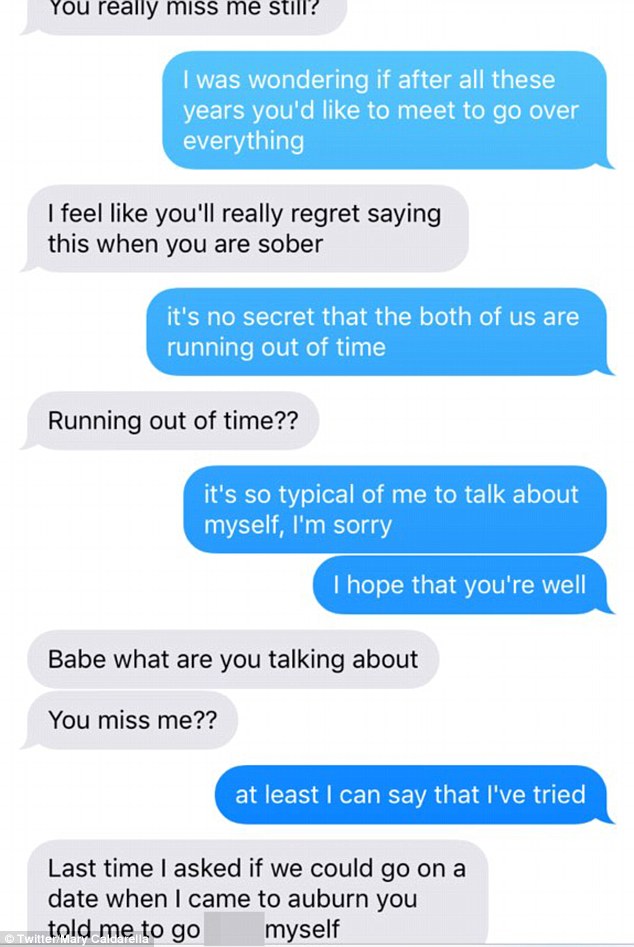Mary Caldarella's Twitter account has since been made private, but the Daily Mail took screen shots. Here they are with Caldarella's caption of, "When the ex falls for Adele lyrics."