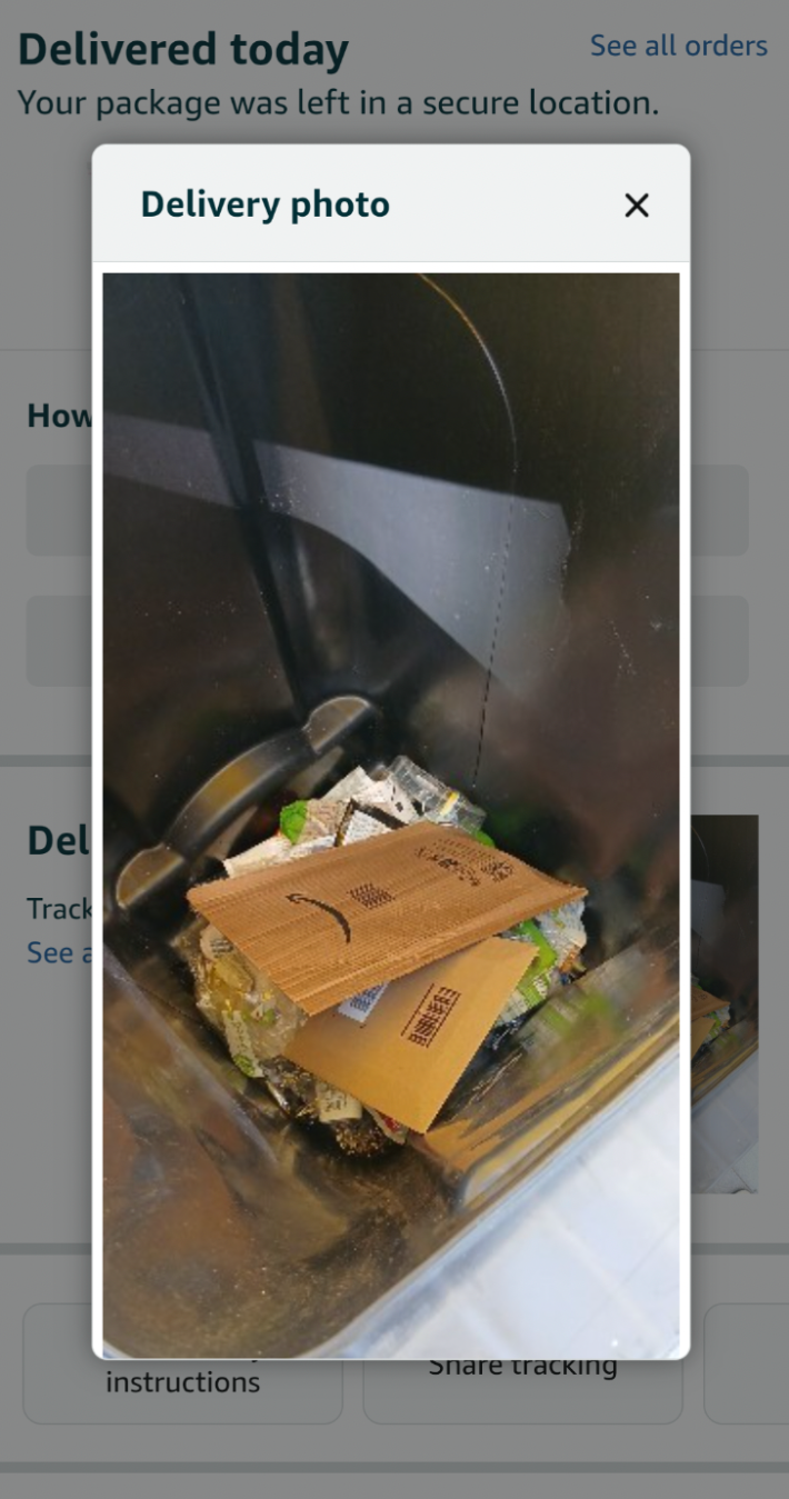 Amazon delivery put my package in the trash and took a photo of the "secure location".