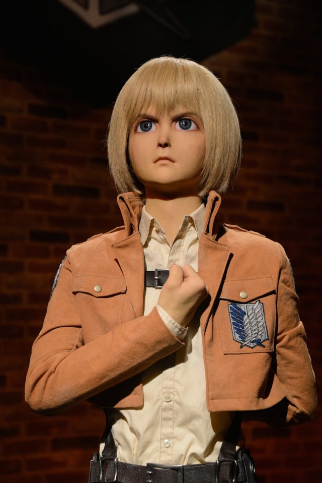Inside, there are creepily lifelike wax statues of the main members of the Survey Corps: Eren, Mikasa, and Armin.