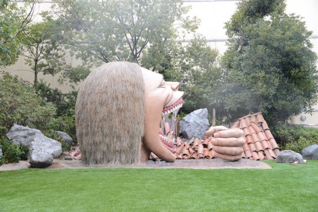 The exhibit also lets you recreate one of the anime's most infamous moments—that is, you can walk up to this terrifying specter and pretend you're about to get eaten.