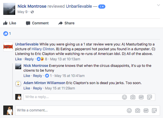 Soon, others piled on with tales of the bar and its owner's unacceptable behavior. Most of the posts were blatantly racist, and a general air of dismissal accompanies every response the bar has given to complaints made by customers.