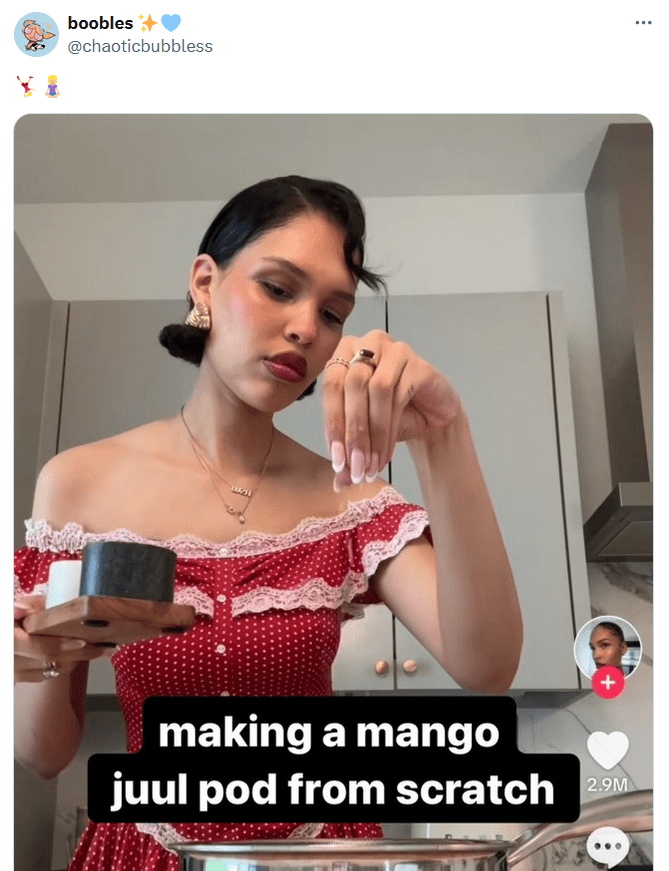 Influencer Nara Smith unintentionally inspired a new meme format this summer as people riffed on her videos in which she makes items from scratch. While Smith generally sticks to food, meme-makers applied the "from scratch" concept to anything and everything, starting with mango Juul pods and including more nebulous concepts like "a good weekend."