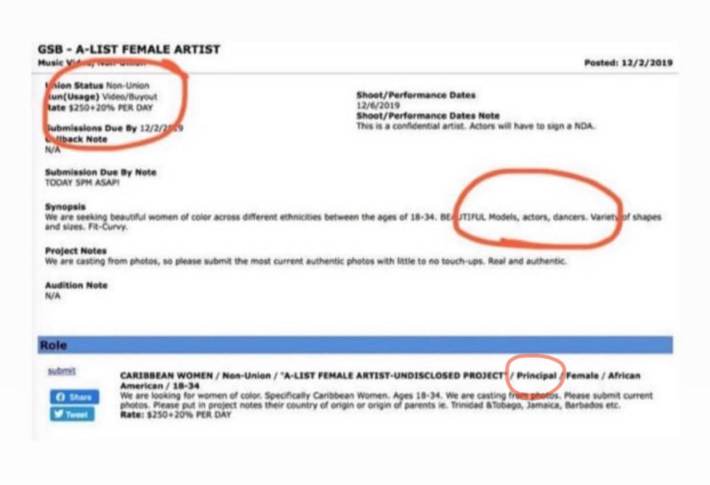 Update 9:45am CT, Dec. 22: The Dancers Alliance sent the Daily Dot two of the casting calls in question, which it said both it and the SAG-AFTRA confirmed was for a non-union Beyoncé music video "before sharing anything with the public."