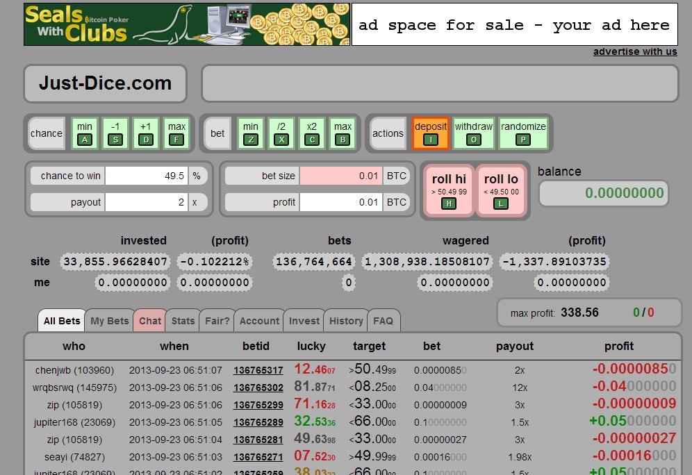The most innovative thing about Just-Dice is that it doesn’t just go after gamblers, it also attracts investors. Anyone can put money into the site for other players to play against. Investors get to keep any profits and losses made on their Bitcoins.