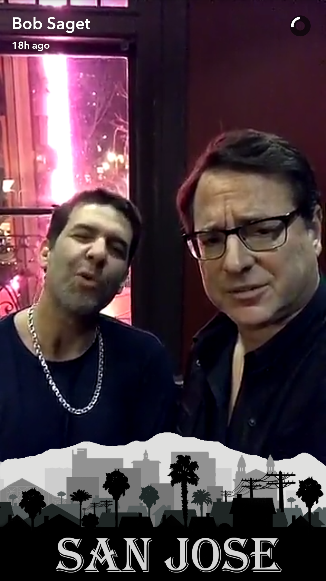 Follow Bob Saget if you want to hear dad jokes, watch him drink out of a lot of water bottles, and see where he is around the world.