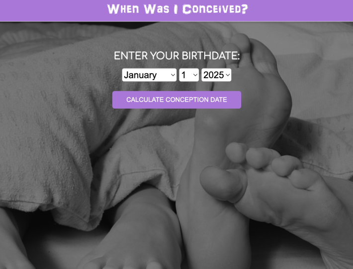 "If you put your birthday in the website, it can tell you the timeframe when your parents might have conceived you. It even gives you extra fun facts, like what movie and song were popular during that timeframe that might have influenced your parents to get it on.
