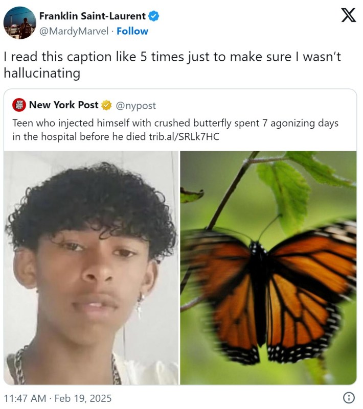 Once the New York Post story hit X (formerly Twitter), people started discussing it, speculating that injecting crushed butterfly could have been part of an online challenge gone wrong. However, with no evidence any such challenge existed, many began to wonder why the teen would do something so strange and risky.