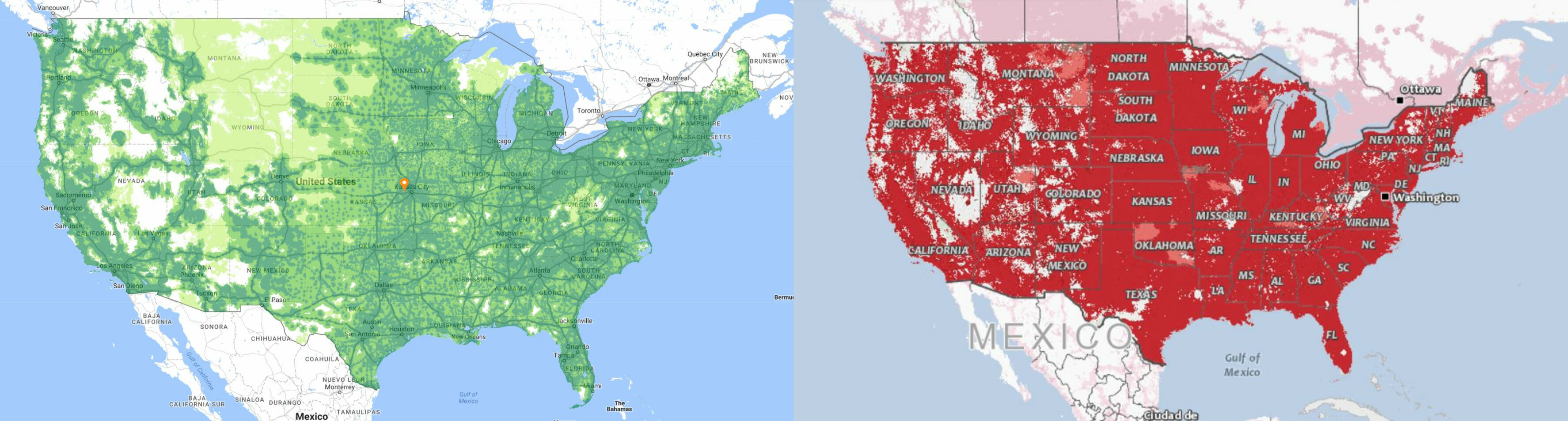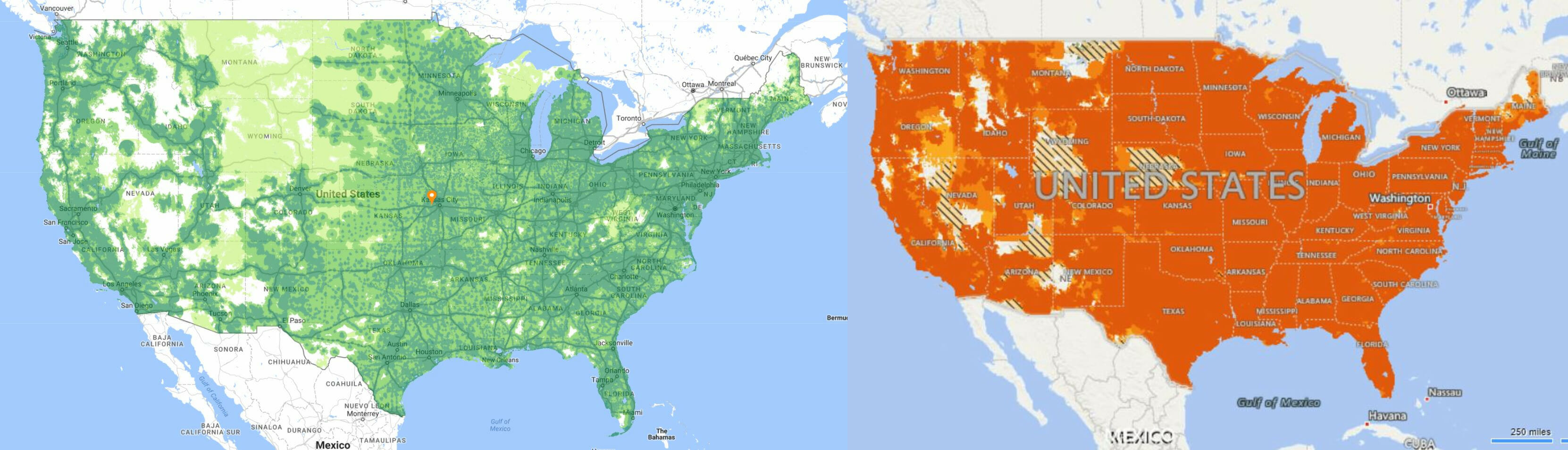 With a special SIM card, Project Fi uses T-Mobile, Sprint, and U.S. Cellular mobile networks. While none of these three networks are as robust as AT&T or Verizon, together they cover a lot of ground with high-speed LTE connectivity. You can get an idea of their coverage area from the maps below.