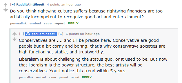 3.) "The best artists will be conservatives"