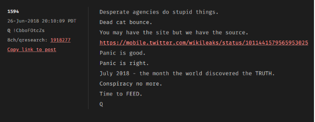Drop #1594 became one of Q’s most famous blown predictions, as he claimed that July would be “the month the world discovered the TRUTH.”