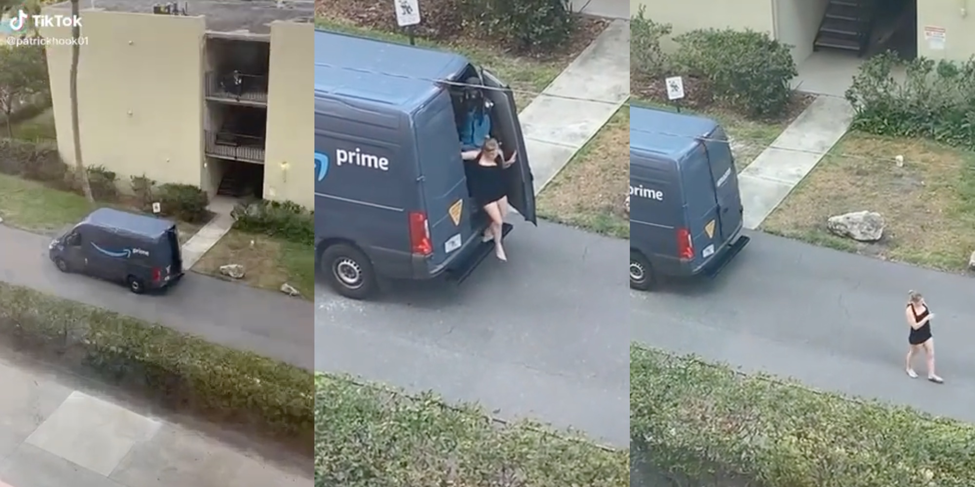 The video, posted to TikTok by @patrickhook01, shows a woman exiting the delivery van, causing some fellow users of the video-sharing app to question what the two were doing in there.