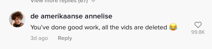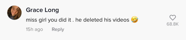 "Miss girl you did it." one commenter wrote on @neens.com's video. "he deleted his videos."