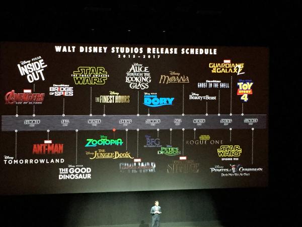 At this week’s Cinemacon, Disney revealed its film lineup through late spring 2017, and you could practically see jaws dropping online when Mashable’s Christina Warren shared the snapshot she grabbed:
