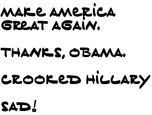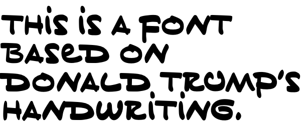 BF Tiny Hand, created by BuzzFeed graphic designer Mark Davis, pulled some source images from Trump’s scribbles on a Vanity Fair article. It’s now available to download for free over here on Dropbox.Typographically speaking, it’s like the bizarre blend of a high school girl’s bubbly writing and an architect’s precisely measured capitals. Or maybe it reminds you of Comic Sans or the Disney font.