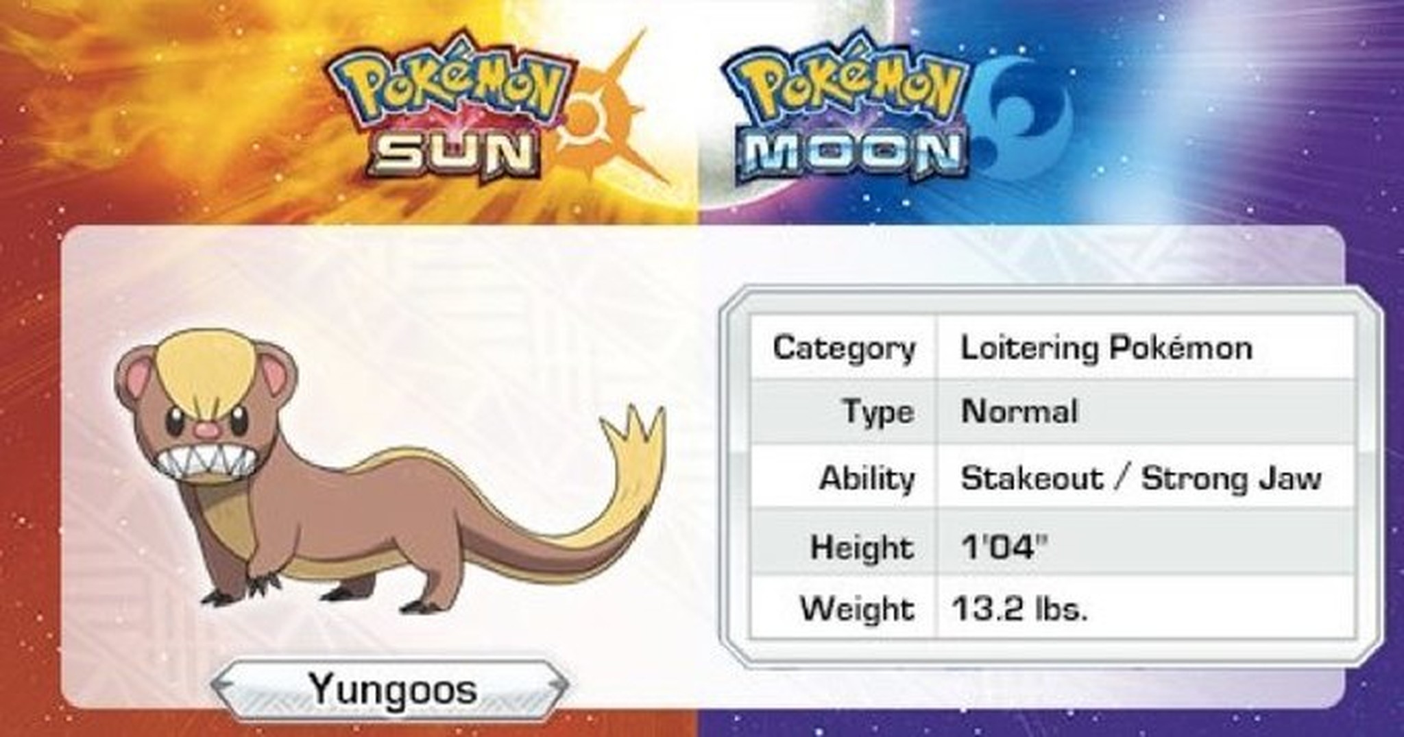 Meet Yungoos, a loitering-type Pokémon that, like The Donald, is basically a weasel in a hairpiece. Also like Trump, Yungoos has a strong jaw and tiny little hands. Sad!