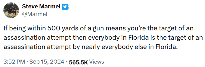 I still don't understand why the Secret Service opened fire on a guy just trying to exercise his second amendment rights next to Trump's favorite golf course
