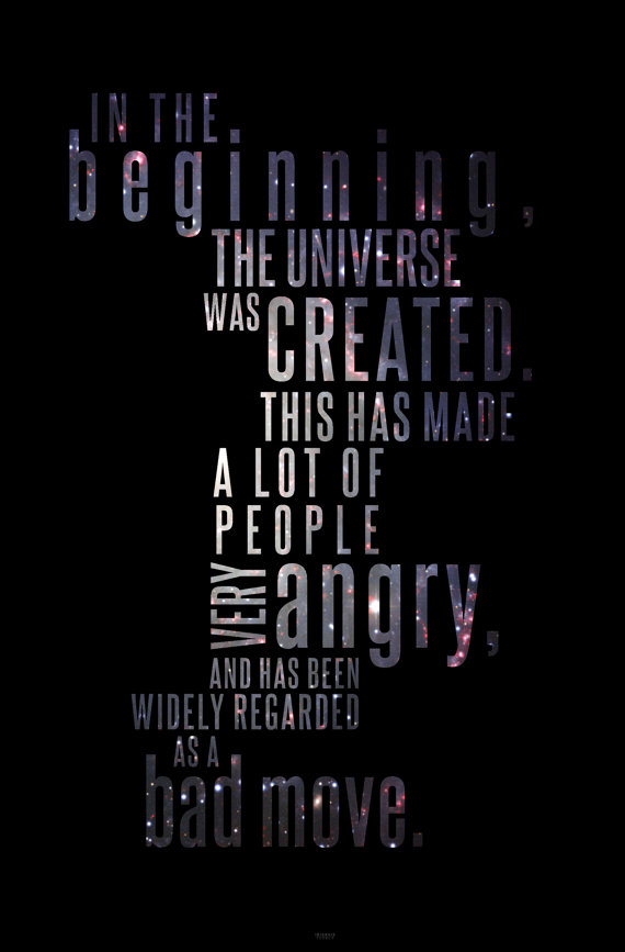 “In the beginning the Universe was created. This has made a lot of people very angry and been widely regarded as a bad move.” —Douglas Adams