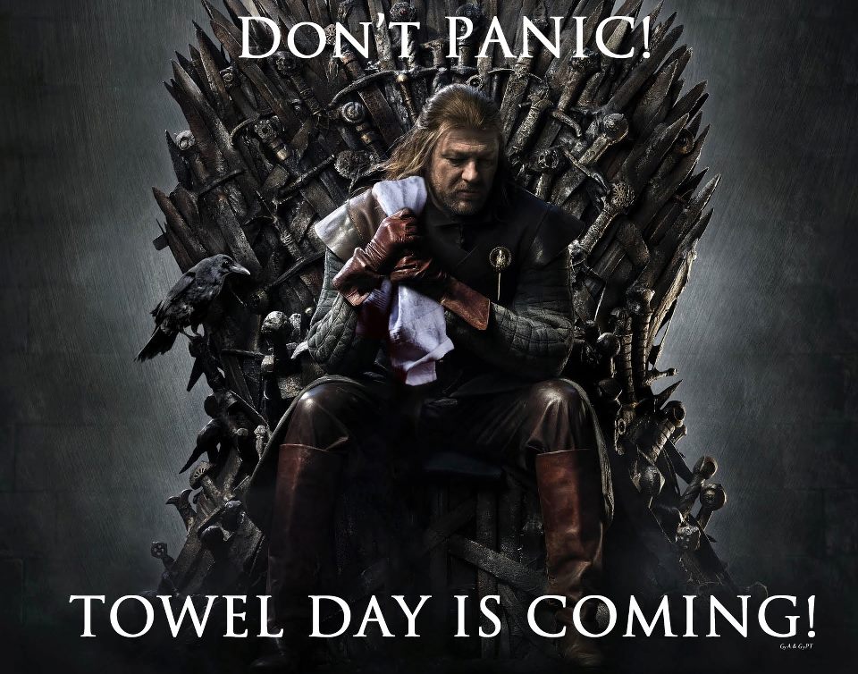 It's the 12th annual Towel Day on May 25th, and any good frood knows it’s the one day a year you can’t leave home without a towel. Towel Day, for the uninitiated, is an international holiday celebrating sci-fi author and generally awesome human being Douglas Adams. I wrote my college entrance essay on how Adams changed my life, so Towel Day is a pretty big deal around these parts. (Here's a primer on why towels are so important to any interstellar hitchhiker.)