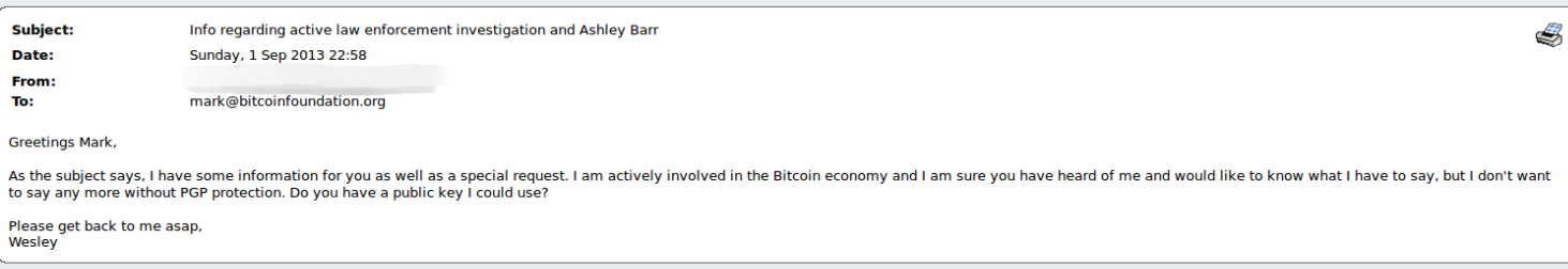DPR also tried repeatedly to make contact about and with Ashley Barr, Karpeles’ associate and the man that Homeland Security investigators once believed to be working as the mouthpiece behind the pseudonymous DPR account.