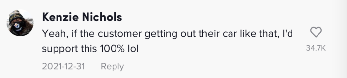 "Then she looked, and she was fucking triggered, I don't know why, but she was triggered," he said. "She started saying to my coworker, 'Oh, are you a manager?' My coworker said no and she's like, 'Good, because your customer service sucks.' And she still started going off."