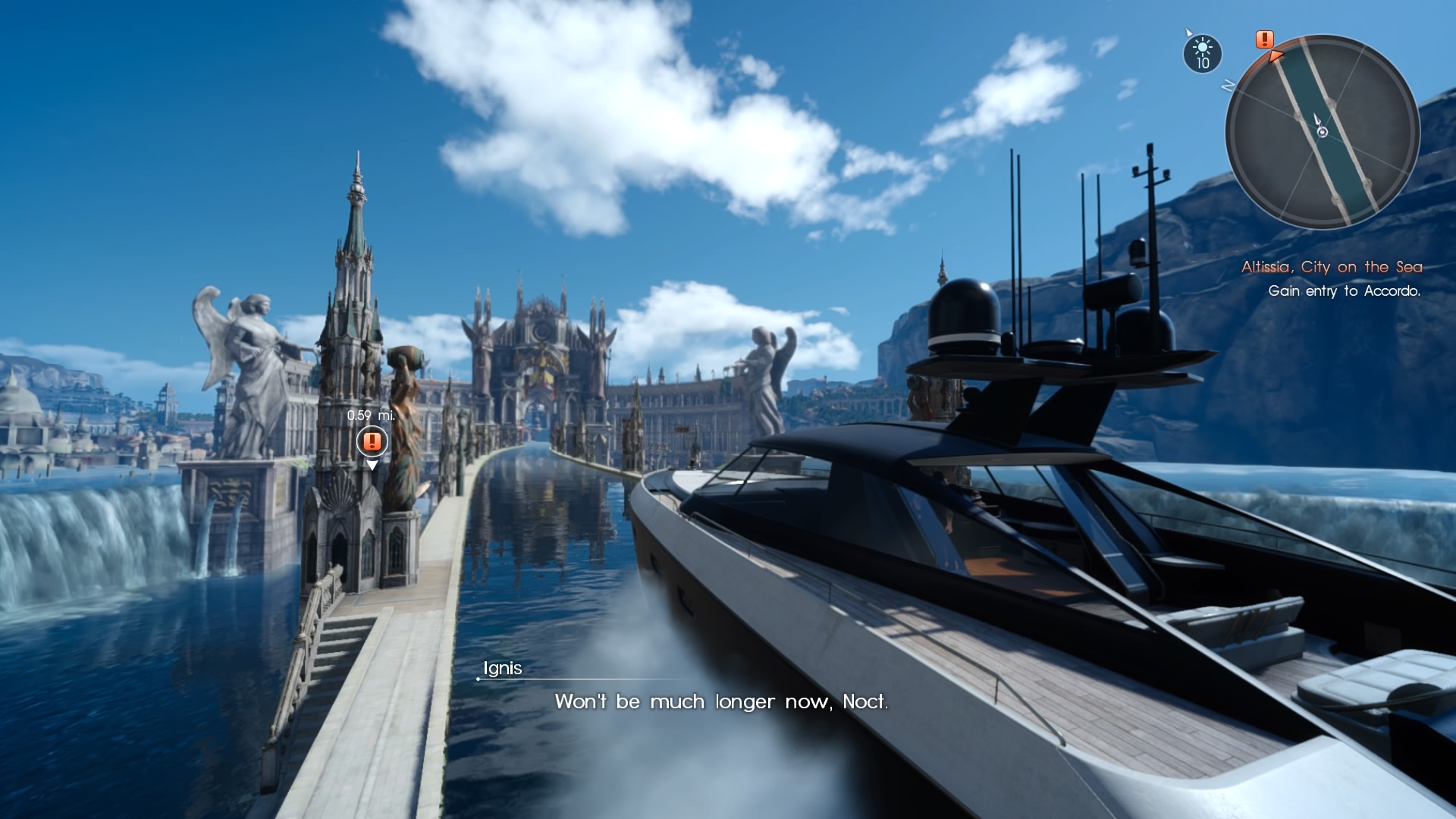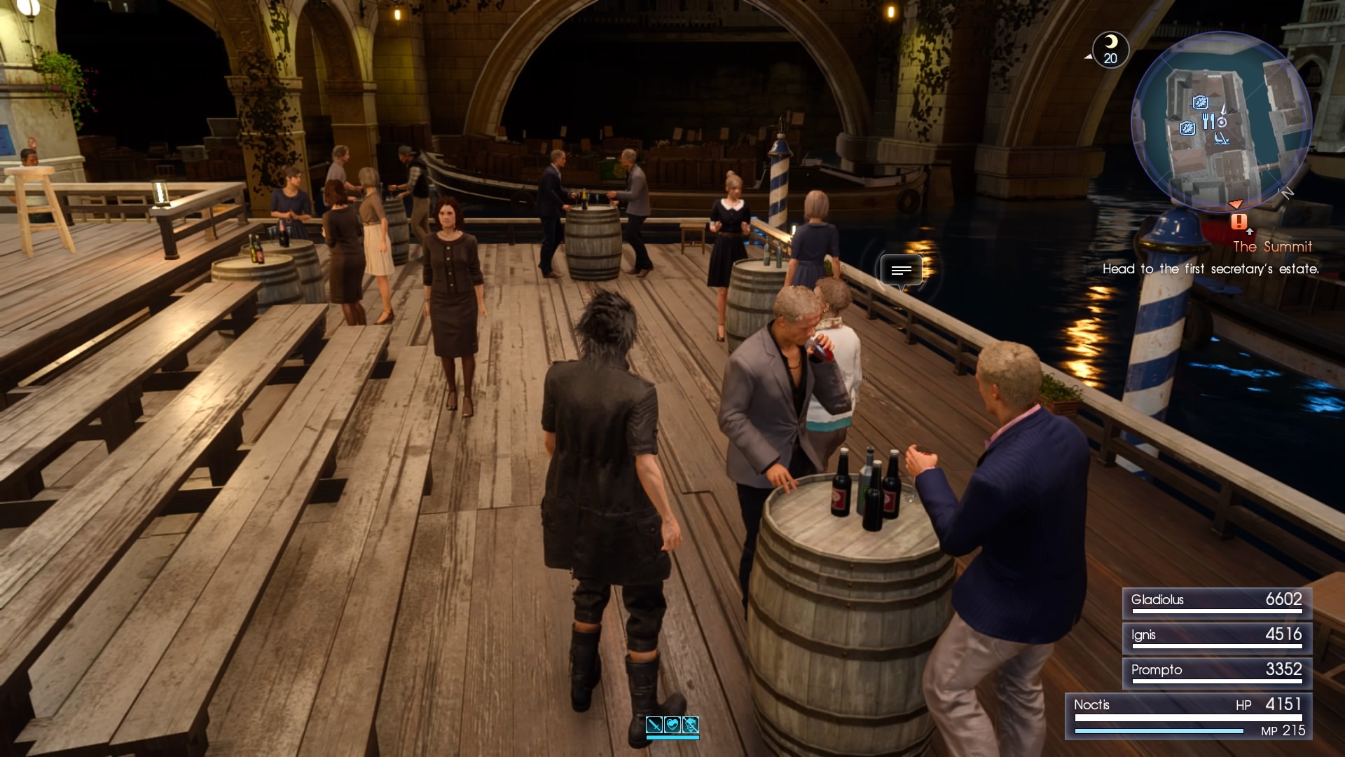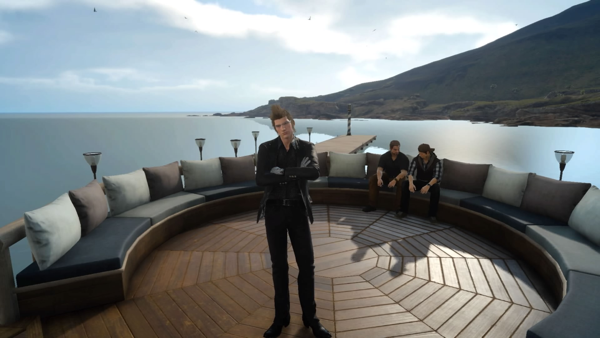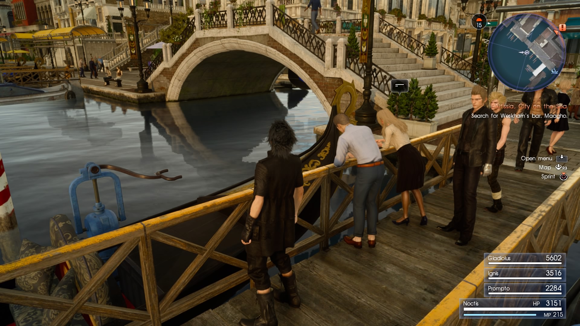 This feeling of askewed familiarity is punctuated once you reach Altissia, a Venice-inspired city that could have been renamed Business Casualville. You chuckle at the sight of citizenry in blazers and ironed khakis, men who are confident enough to wear loafers without socks. Noctis moving among NPCs in packed hotels and courtyards could be mistaken for a scene straight out of the Hitman series, if not for the fact that he looks like a fish out of water. Much the like crew of the Enterprise visiting 1980's San Francisco in Star Trek IV, Noctis' foursome often appears out of place, not that the citizens of Altissia or Lucis notice or care. For a series known for its otherworldly settings and art direction, it's both fitting and ironic that—by Final Fantasy standards—Final Fantasy XV's look is the most otherworldly of them all.