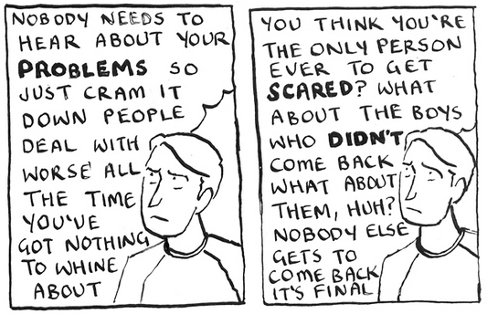 So I think about that with Steve, that so much of what he finds hard about the world in what I’m writing isn’t even being from the past, it’s being really young, and the confusion that comes from being that young and already having a fully established, recognized career. But it’s also that kids made the kinds of calls he did in that war, in those wars. Kids are coping with that kind of trauma. Kids who in a lot of senses didn’t and don’t have a lot of other choices, whether that’s because of their particular social circumstances, or because of culture being what it is and nations being what they are.