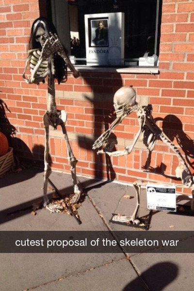 Last year’s meme was inspired by the overabundance of misspelled Halloween decorations that proclaimed themselves to be “spoopy” and “creppy,” but this year’s is rather more complex. 2014 will go down in Tumblr history as the year of the Skeleton War.