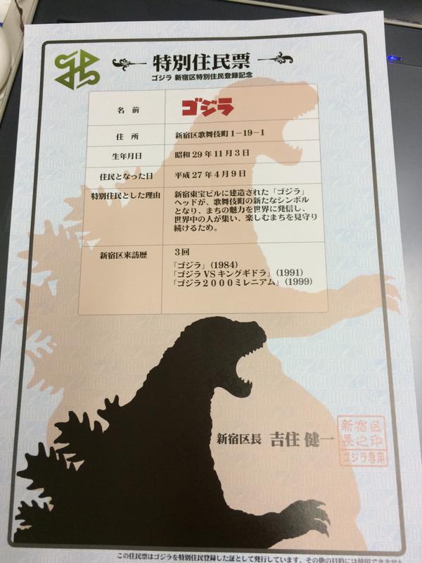 But all of that's finally changing thanks to a new decree from the Tokyo ward of Shinjuku making Godzilla an official resident of Japan.