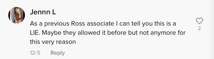 "As a previous Ross associate I can tell you this is a LIE," one commenter wrote. "Maybe they allowed it before but not anymore for this very reason."