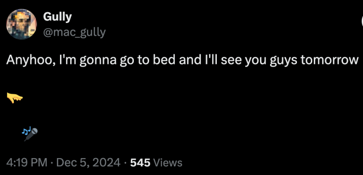 "Anyhoo I'm going to go to bed and I'll see you guys tomorrow"