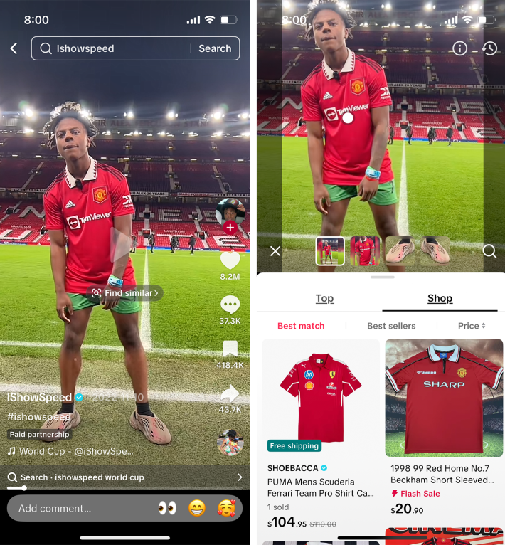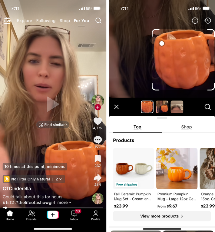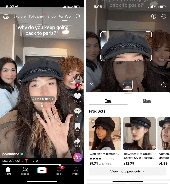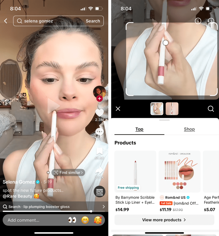 Here’s how it works: When you pause on a video while scrolling the For You page, TikTok will automatically recognize items on screen, whether it’s a shirt, a product from the TikTok Shop, or just a trendy item, and then display relevant tags like “find similar.”