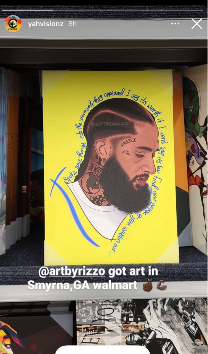 In early February, Rose called Walmart out on Twitter over her painting of late rapper Nipsey Hussle. According to a message she received on Instagram, the print was being sold at a Walmart in Smyrna, Georgia.