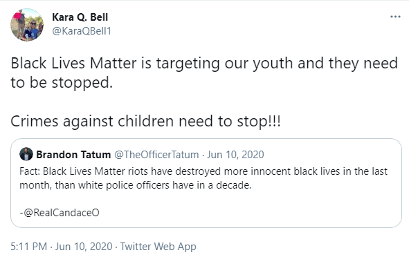 She's also accused Black Lives Matter of "targeting our youth" and "crimes against children."