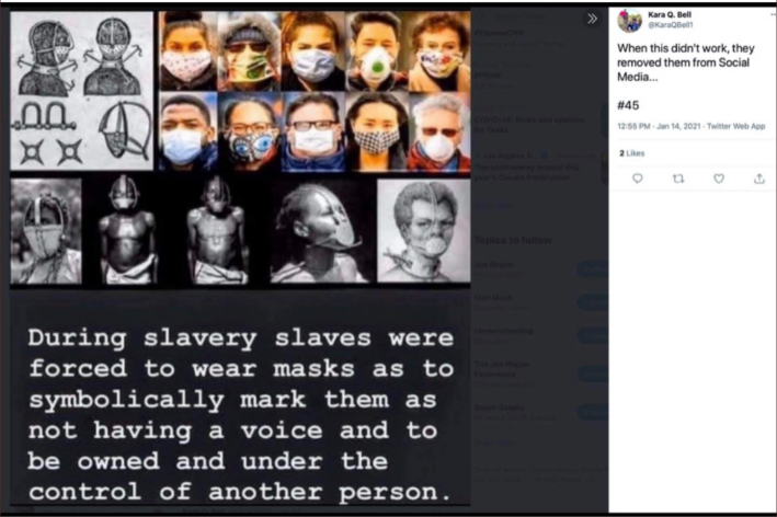 On Facebook earlier this year, she equated mask mandates with slavery, according to a screenshot provided to the Daily Dot.