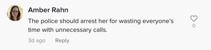 "No, this isn't the first time that my Karen has called the cops," she says in a follow-up video. "She's called the cops; she's called the dog warden. She's called codes; she's called animal control. She's called when I'm doing bonfires. Unfortunately, she's just this type of a person, but she doesn't seem to call when her kids are calling my kids the N-word, or telling my kids to suck his pee pee. So in this case, no, I would say for a Barbie car is wasting people's times, but, hey, thanks for all your comments."