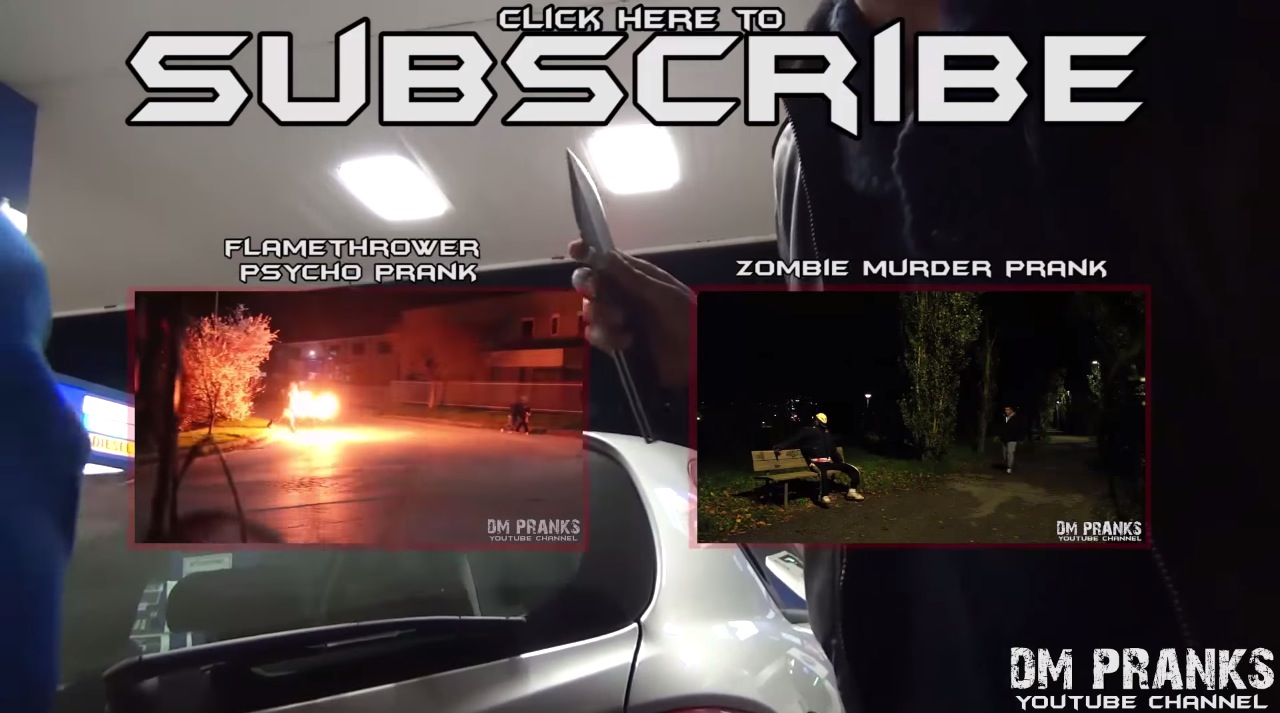 Many viewers have wondered just how the pair get away with their terrifying pranks. Well, it looks like they nearly didn't. At the end of the video, one man is seen holding what appears to be a sheafed knife after the evil clown appeared at a gas station.