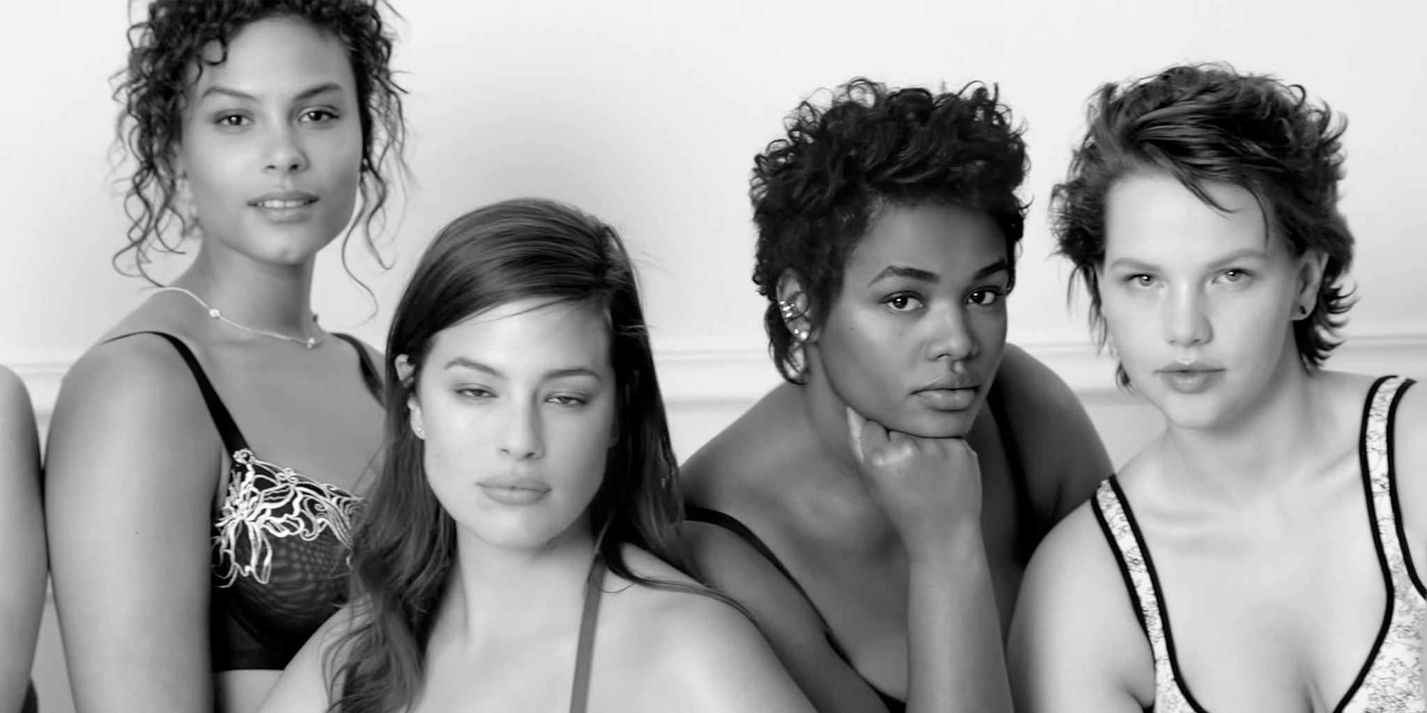 Shot in black and white, the commercial portrays models of a full-figured but rather uniform body type wearing lacy intimates while coyly laughing, shimmying, and offering their thoughts on what’s “really sexy.” One offers, “I think it’s in my eyes,” while another casually gestures to herself and says, “Something that looks like this.”