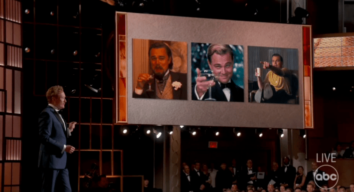 During O'Brien's opening monologue, he referenced all the great memes that have been clipped from DiCaprio's movies, like The Great Gatsby and Django Unchained.