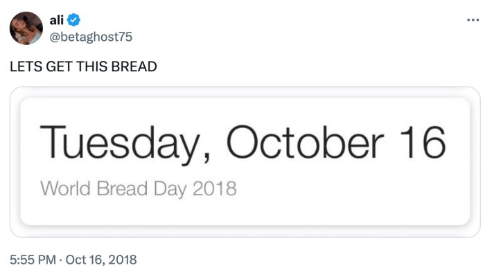 Even though "let's get this bread" refers to making money, the proliferation of the phrase means that people also began using the meme in a more literal manner.