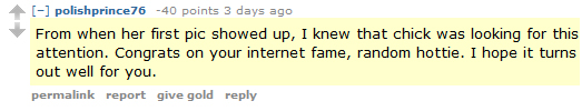The Imgur gallery contains two dozen pics, along with her real name. And the comments—many heavily downvoted, thank God—go something like this: