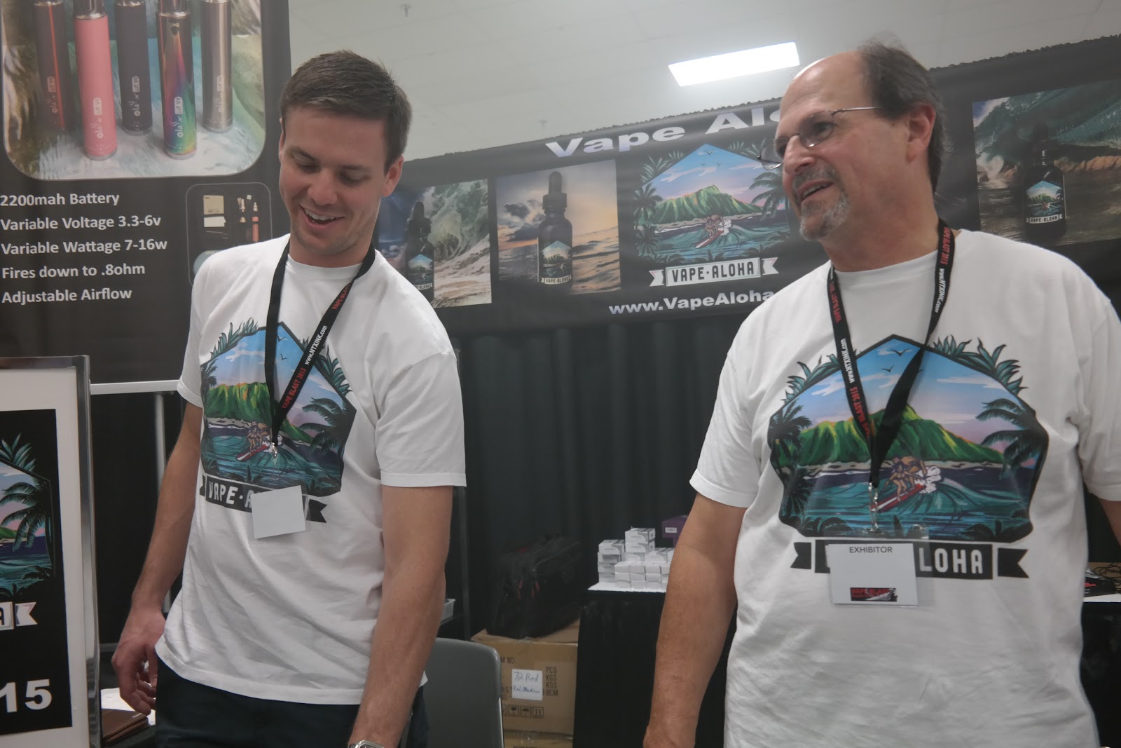 As I stepped into the hazy, sweet-smelling sea of mostly white guys in black T-shirts, I was hopeful for the quality douche gold I was about to mine, but, unfortunately, my gradual transformation into empathetic human being began as soon as I stopped at the first booth. Vape Aloha was their name, and kindly and graciously explaining how to vape was their game.