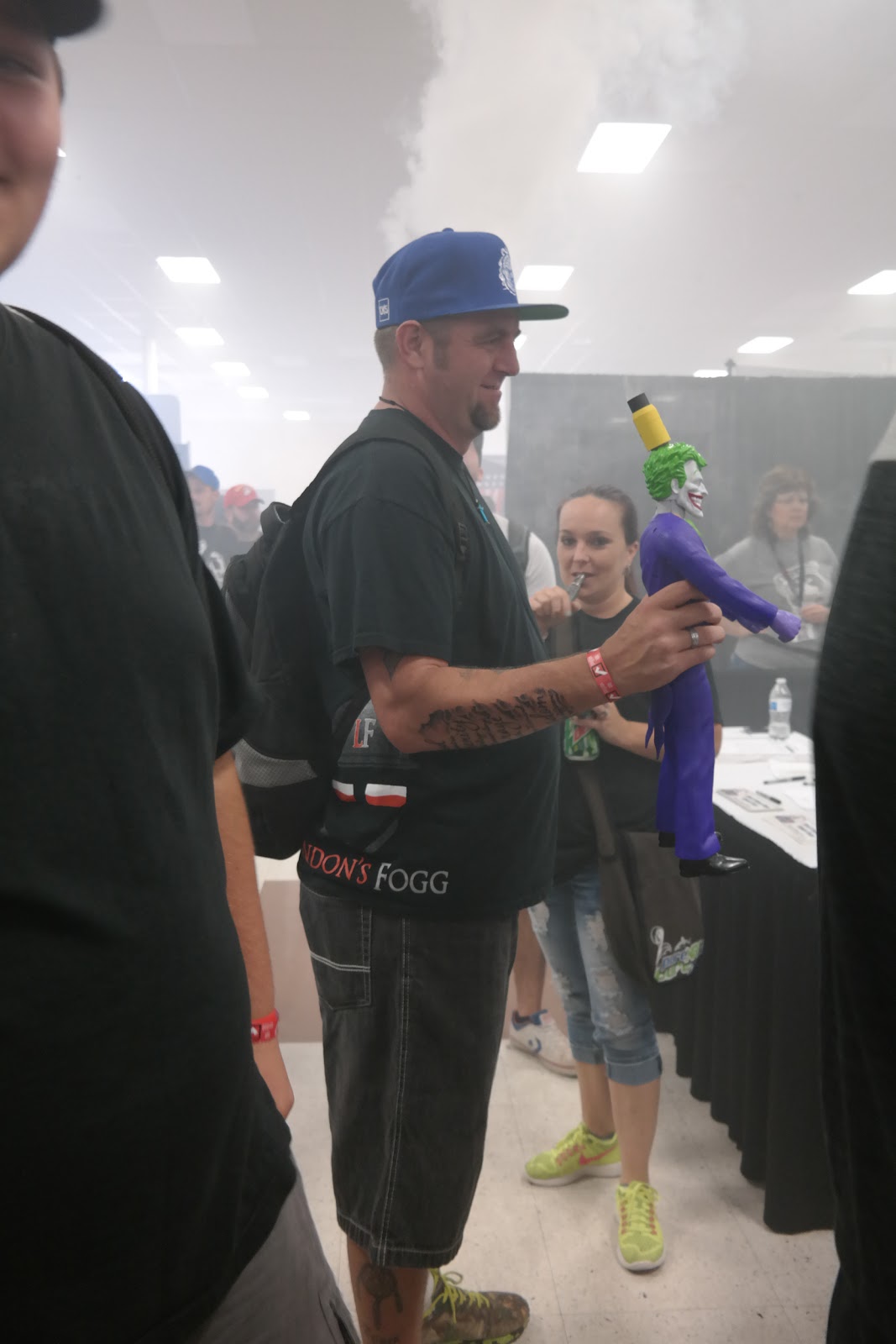 Cruising around the conference floor, I observed some images of intrigue, like this man holding a giant Joker vape: