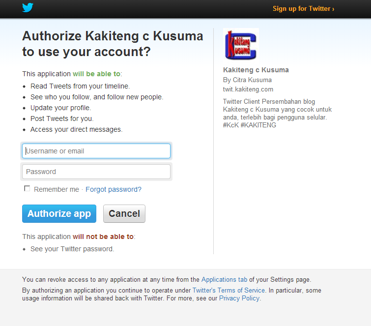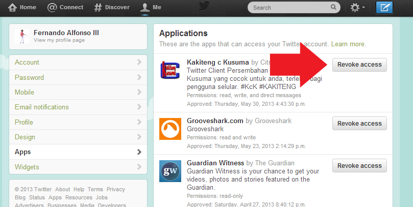 5) Once your avatar is uploaded, go to your Twitter settings → Apps and revoke access to the "Kakiteng c Kusuma" app.