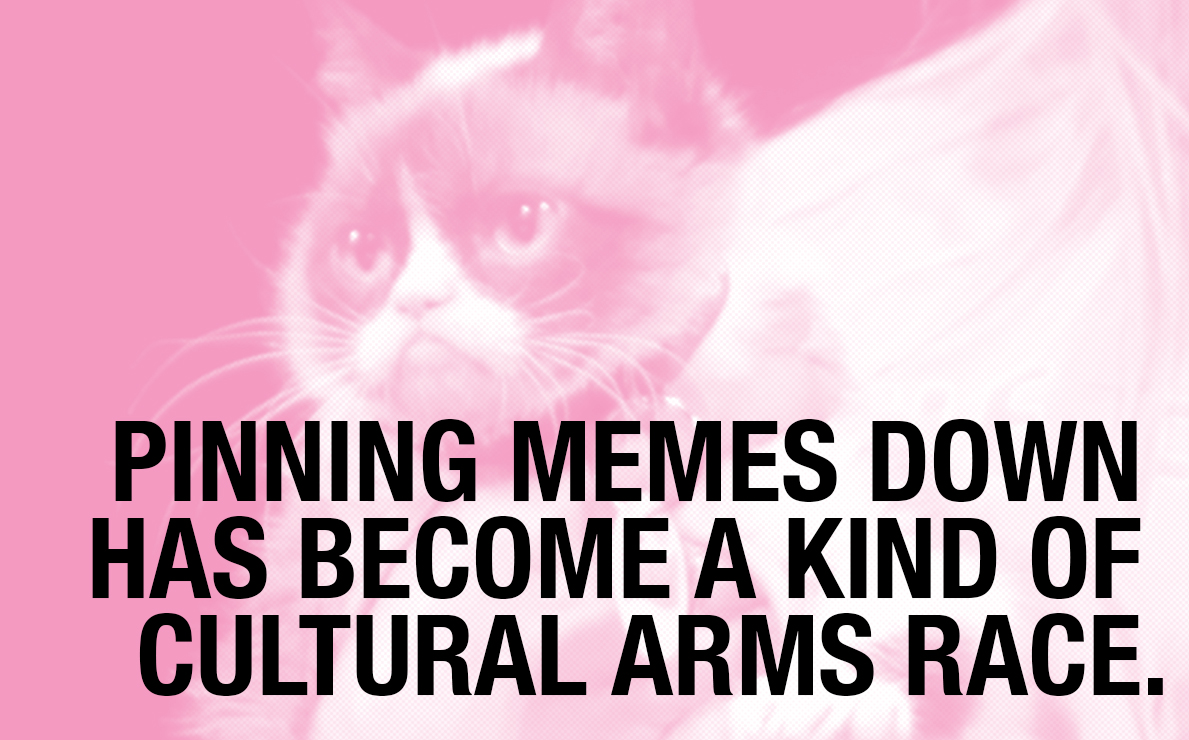 Internet culture was once “this place that no one else really valued except for the community that created it,” Cheese told me. “Everyone else kind of dismissed it.”  Now, the status of Internet memes has risen to the point that it’s harder to ignore them than it is to embrace and understand them. Everybody gets Grumpy Cat. Members of the communities that created it are even likely to be annoyed by its omnipresence.