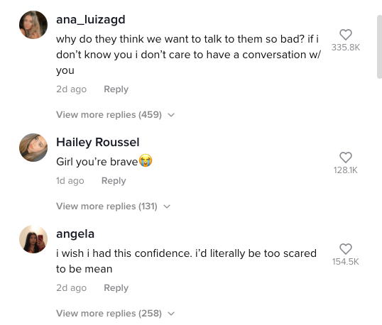 Others commended the way Avianna handled the situation, remarking on how they feel like they have to be nice to stay safe. “I wish I had this confidence. I’d literally be too scared to be mean,” one said.