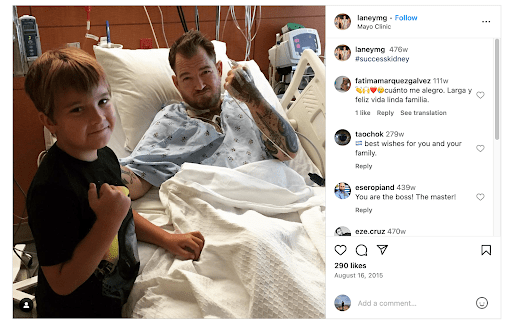 In thanks, Sam’s mom posted a meme about it on Instagram, followed by a father-son reenactment which was captioned #successkidney.
