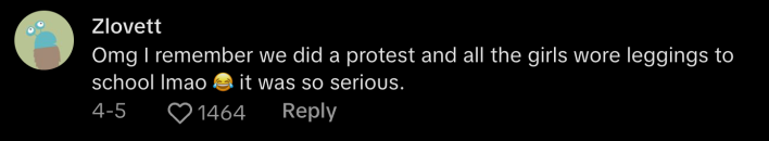The video was posted on April 5, 2025, and has over 1 million views and 195.4K likes at the time of writing. More than 4000 comments reveal that the “leggings are not pants” controversy of the early aughts lives on in the memories of millennials who chimed in to reminisce and celebrate their victory over the censorship of women's bodies.
