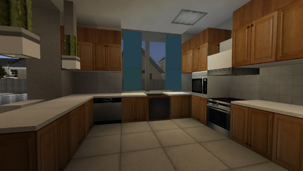 Their current project, Huntington City, began as a engineering map that laid out the streets using real-world road engineering principles. The city was broken up into business districts, neighborhoods, and industrial areas. Construction teams supervised by Girard are assigned to specific areas, and construct ultra-realistic buildings, while teams of dedicated decorators furnish every single room in the city.