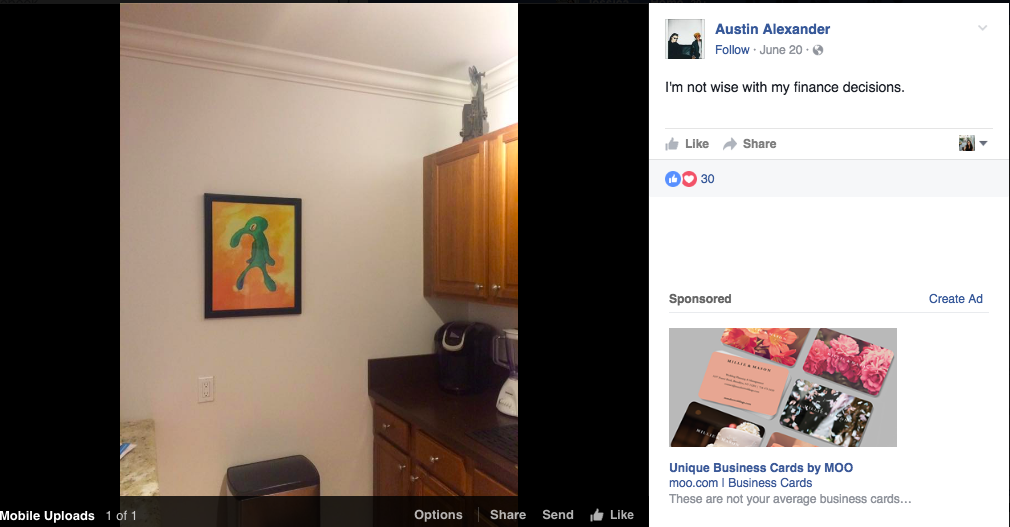 "Unfortunately, the real story doesn’t involve unaware moms (my mom did see it, and said it was a 'cool abstract painting of a rabbit')," Alexander said.