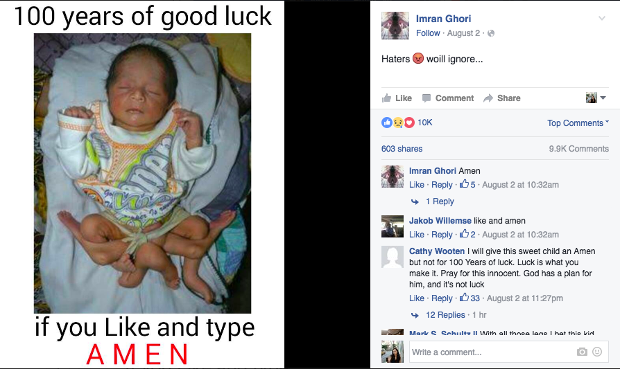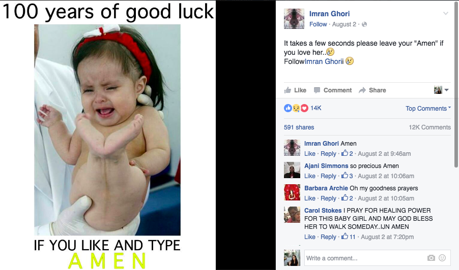 Or this one, from Imran Ghori, who uses what appear to be stolen or altered images of children with birth defects and disabilities as clickbait.